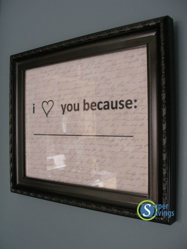 This special Valentine’s Day gift is super easy to make and all you need is a sharpie, glass, and a frame. The amazing thing about the gift is that it keeps on giving because you write new reasons every day.