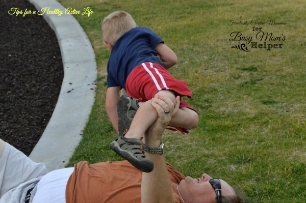 4. Exercise ‘with’ your kids. By this I mean use them as your exercise equipment. Not only will you get a workout, but they will have so much fun. My grandson laughed and laughed while my husband ‘bench pressed’ him. You can also lay them across your shins as your laying on your back, bend your legs and pump them up and down. They love that too.
