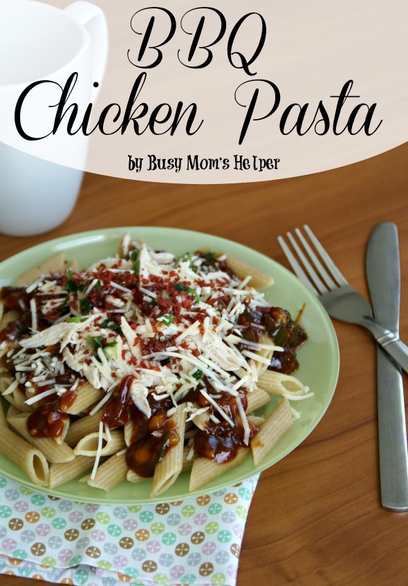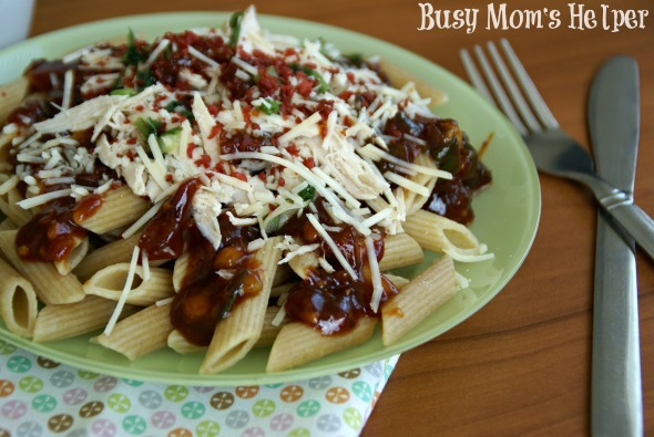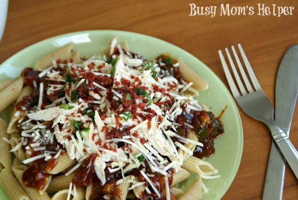 We’re definite pasta-lovers in our house, especially penne pasta, and adding my Tangy BBQ Sauce just completed our dish perfectly! For some healthy protein I included some chicken, then you just toss on some Parmesan cheese and green onions, you’ll be licking your fork clean! I even made it look super-pretty to give my Hubby a tasty and attractive dinner to come home to!