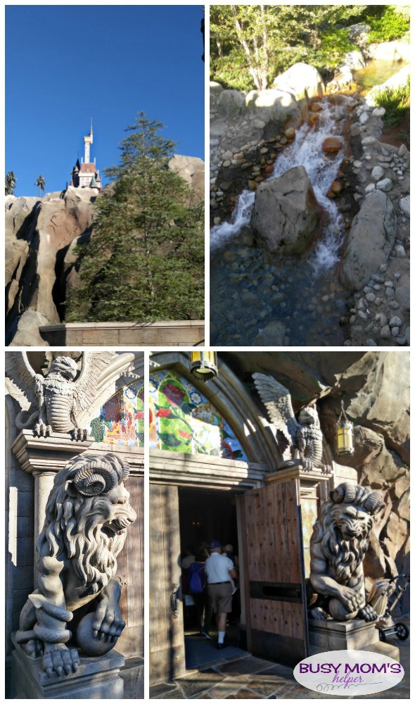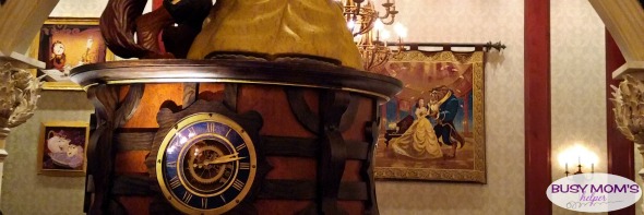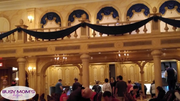 West Wing: Of course you HAVE to walk around the West Wing (if you don’t choose to eat there) and check out the incredible details. From the torn, draping curtains all over, to the slashed photo of the Prince, to the glowing, magical rose in the corner – it’s an incredible room! There was a ‘fireplace’, and glowing candles in this more dark room, still setting a really neat atmosphere. It was less crowded and noisy in there as far as people eating their breakfast, although lots of people kept walking through to see the rose.