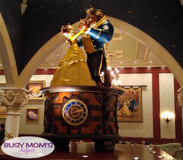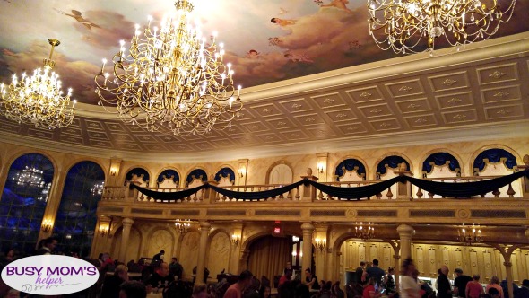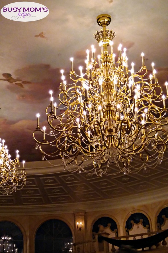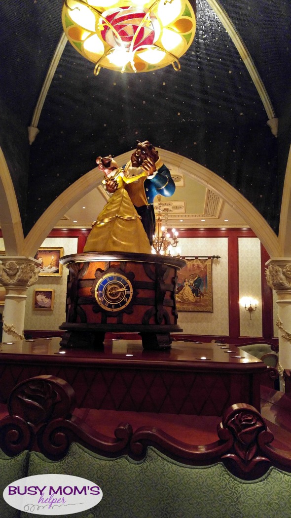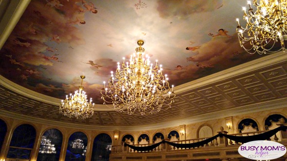 It was BEAUTIFUL! I was told the babies on the ceiling were actually from baby pictures of the designers – what a fun little memento! It was bright in this room, and out the far window was a lovely ‘night’ scenery like you were really looking out at the forest surrounding the beast’s castle. My absolute FAVORITE room!