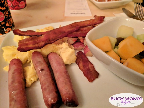 For breakfast (and I heard lunch is the same way) you stand in line to order your food from a kiosk. The line is actually really fun, taking in all the decor – from chandeliers and glowing candles, to these hilarious suits of armor! Listen closely, they sure have some fun conversations with each other 🙂