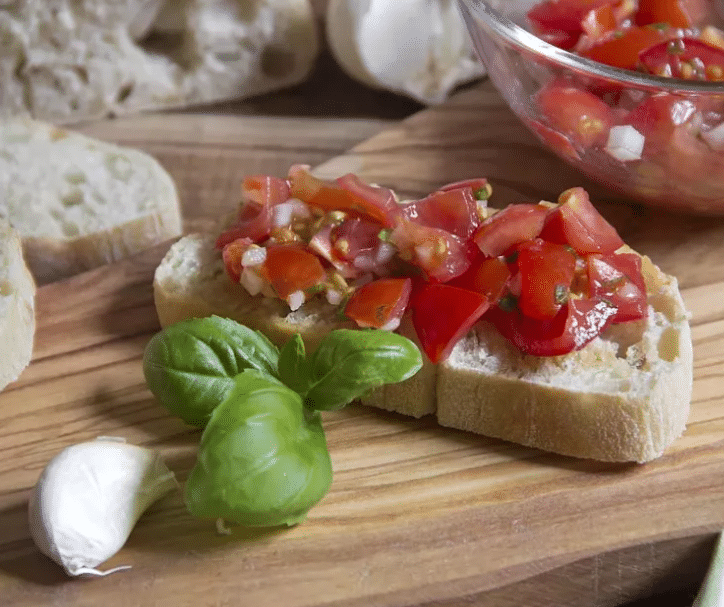 One of the best summer appetizers is also the easiest to prepare. I am talking about the world-famous bruschetta with tomatoes and basil. The recipe is super easy to make you the only thing that you need to do is find fresh tomatoes and basil to add more taste.