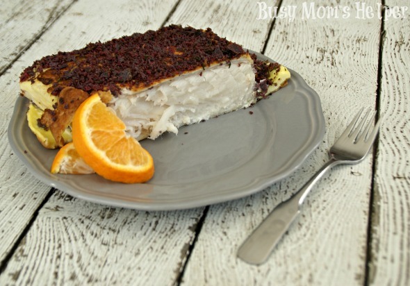I don’t like seafood. Now don’t think I’m one of those ‘refuse to try it’ type people, because I do always try whatever seafood dish or sushi Hubby makes or orders, I just never like it…and usually gag. So when Hubby got some halibut out of the freezer the other day, I was worried that another ‘ewww’ taste was coming. When he cooked up his new favorite Blue Crusted Halibut recipe, though, I was so excited that I actually liked it! Not love, but hey, I could eat it!