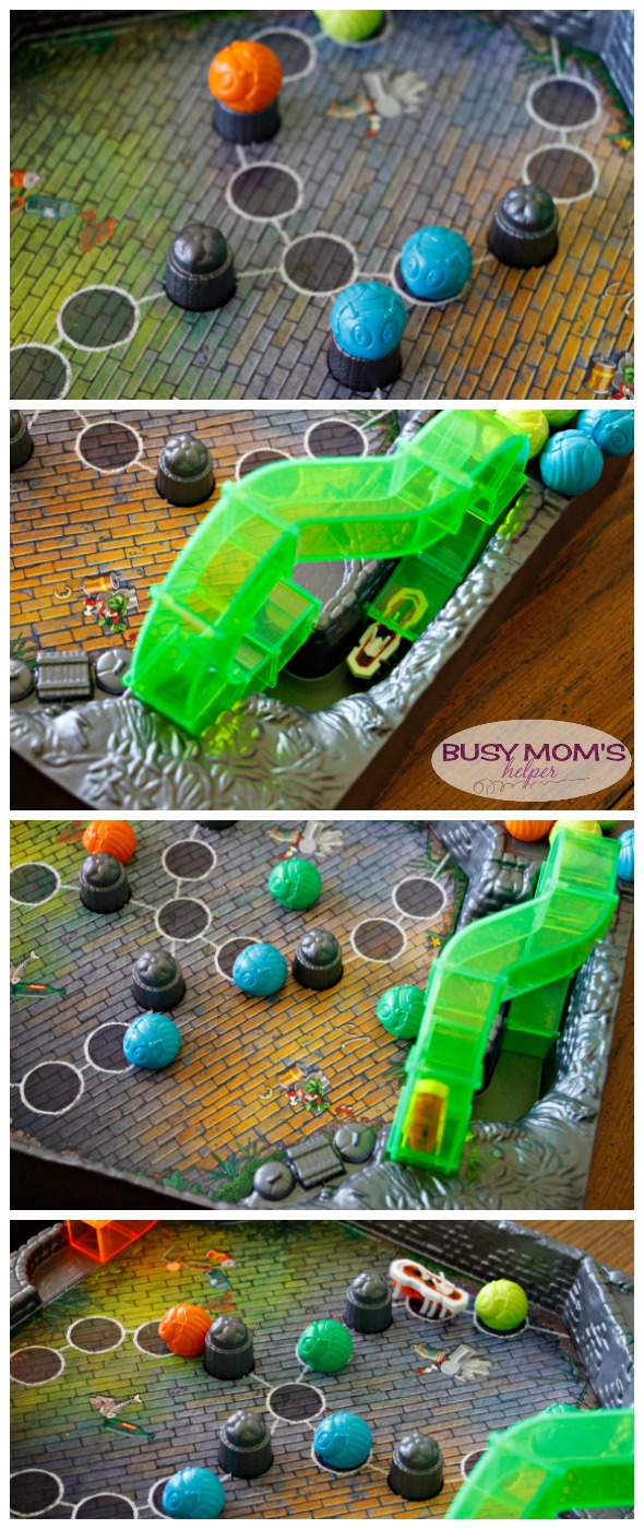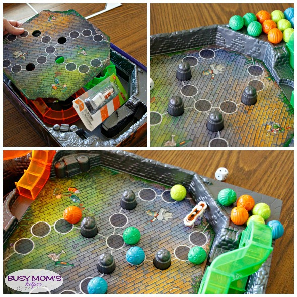 The game got SUPER exciting any time the Hexbug would start climbing back out of the tubes – the kids would scream to hurry and try to fit as many turns as they could before he emerged onto the board and they had to freeze play while he wiggled around.