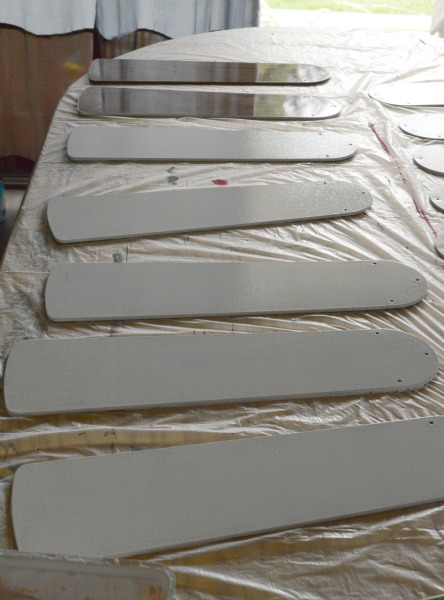 After you wash everything really well, let it dry for a day to make sure everything is completely dry. No water at all.  Then, you paint them. I used white ceiling paint on mine. The idea, according to Lisa, is for the blades to blend into the ceiling when they are on. It really works too. Amazing.