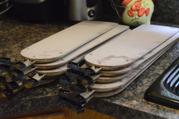 Finally, put them all back together. As I said, I have five ceiling fans, so it was a lot of painting for me. I also had my husband take the blades off the fans in the living room and my son put them back on because the ceiling is so high and I’m not a fan of ladders. I did the rest though.