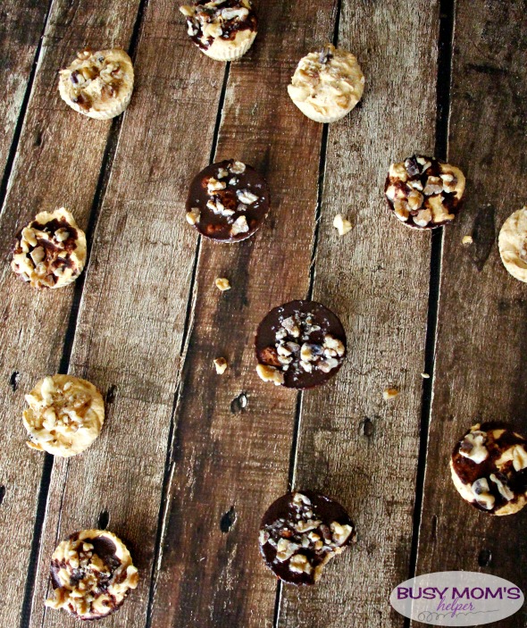- Put the semisweet chocolate and coffee creamer into a microwave-safe bowl and heat at 50% power, stirring at 30 second intervals until fully melted and smooth. Remove and allow to partially cool, stirring occasionally so it doesn’t get too firm. Spread or drizzle over pumpkin filled cups. Sprinkle tops with nuts or chocolate chips, as desired. Place back in freezer at least 4 hours, or overnight.