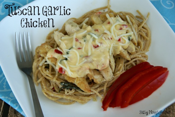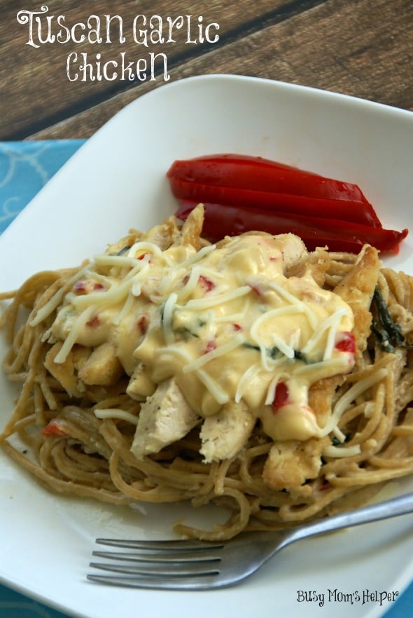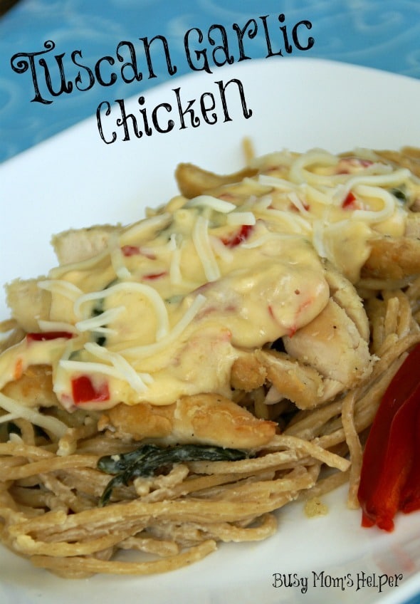 Who else is a total pasta-lover here? My family LOVES pasta, and we try to fit it into our menu at least once or twice a week. I think one of the great things about it is how flexible you can be with it…such a variety of flavors, ingredients, and make it as simple or complex as you’d like. Plus, it tastes amazing, right?! This Copy-Cat Tuscan Garlic Chicken is no exception, and you can make it up fast with no hassle, too!