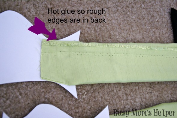 - Fold your green leg fabric so the edges are smooth, then glue to the back of the shoes.