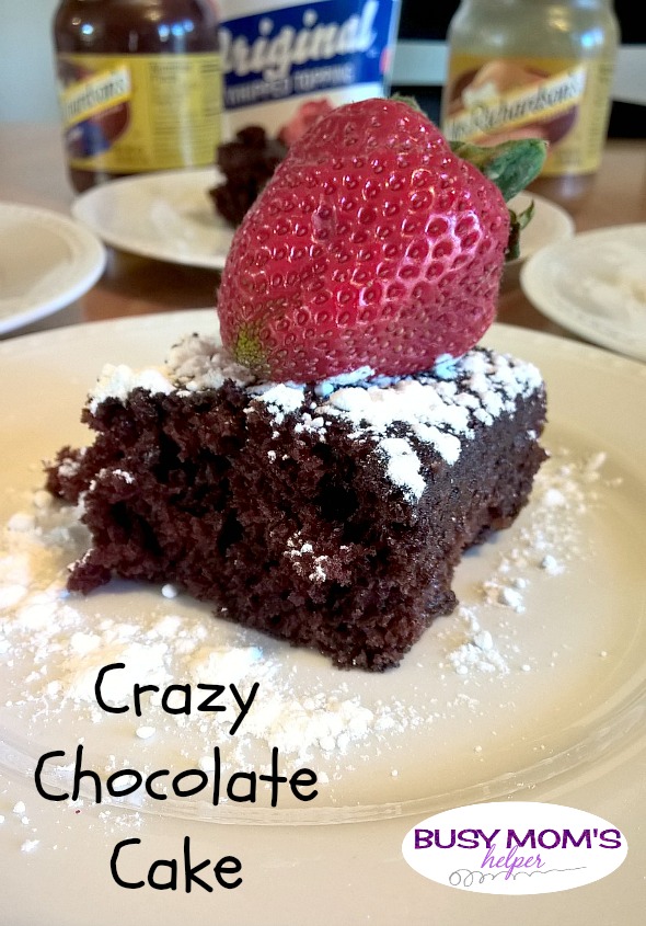 Summer is coming! Let’s get ready by having a basic, quick, and easy cake recipe to whip out for all those fun little parties. This Crazy Chocolate Cake is quick to make, doesn’t dirty all your bowls and mixers and can be combined with several different fun toppings.