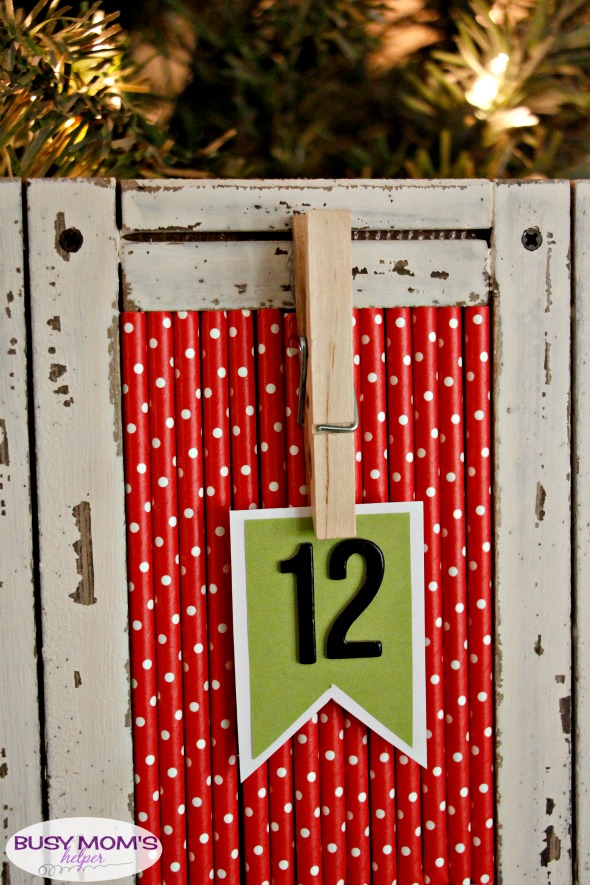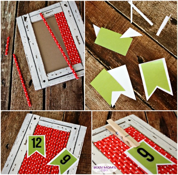 It’s also great because it can use just a handful of items, and takes less than 10 minutes to put together. You can certainly mix up the colors and designs, making it into something other than a Christmas countdown, if you’d like! Remember our Disney Countdown that’s similar? Just like that, you can switch up the straw colors and designs, as well as the papers or frames, and add little accents as you see fit to really make this your own.