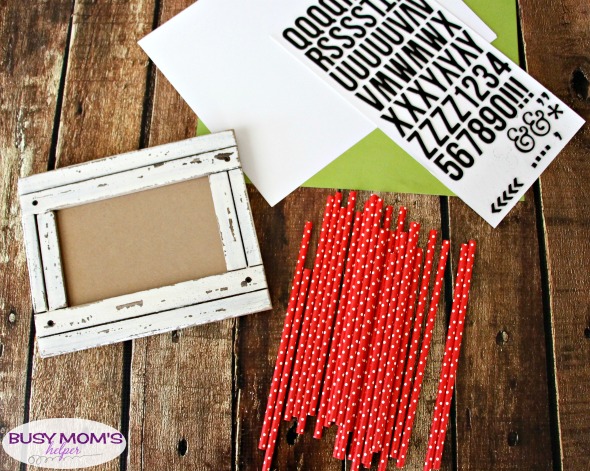 1. Cut your paper straws so they fit snuggly inside the frame. You CAN glue them into place, but then you can’t switch them out – I prefer just making them fit tight so I can remove them later to reuse the frame if desired.
