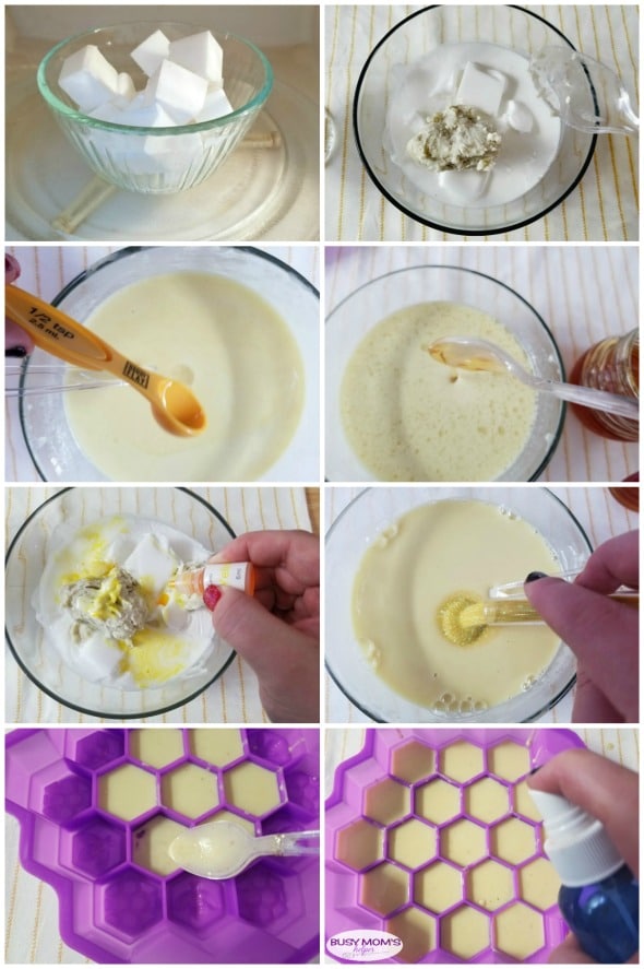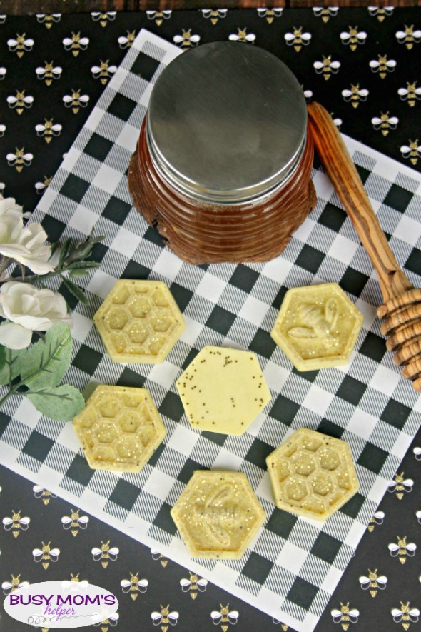See, I told you it was SUPER easy! You can switch up the colors as you’d like – for the ‘honey bee’ theme of this DIY soap, we thought yellow was the perfect choice. And check out those awesome honeycomb & bee designs!