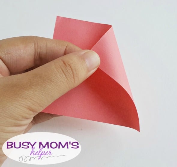 - Take any one of the square cut-outs and fold any one corner towards the middle of the square.