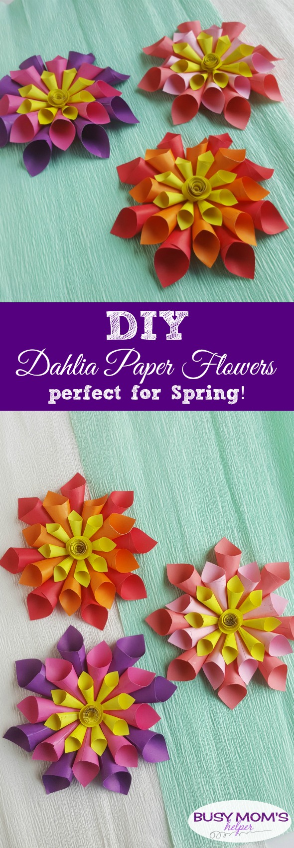 With all this rain, the leaves and flowers are popping up fast and making it feel like Spring. I’m definitely not a winter person, so my mood has improved with this coming season! Soon there will be colorful plants everywhere – and why not make your own beautiful Dahlia flowers with this fun project? You can do these fun DIY Paper Flowers for Spring to decorate your home or office, give as a sweet bouquet, or just because.