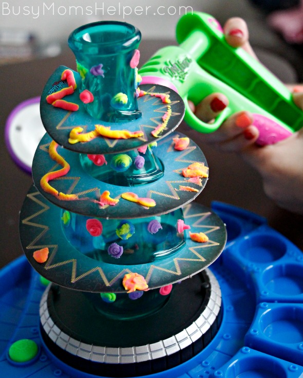 We had a blast playing with DohVinci at Family Forward last month, and Black Widow quickly went through the supplies they so kindly sent us home with. She could sit and create with it for hours! The (affiliate) DohVinci Spotlight Spin Studio comes with 5 projects to create – a vase, bowl, and some frames with stands – as well as the base for spinning and a double spotlight feature. It also includes the styler tool and 6 DohVinci colors, some of which are the fun spin-color ones!