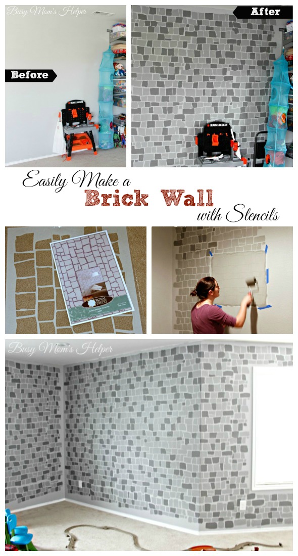 Have you ever wanted to do a specific design on your walls, but the thought of doing each piece by hand made you want to cry? That’s how I felt when I decided to make my kids’ playroom wall look like bricks…old, sloppy bricks (that still looked fabulous)! Luckily, you can Easily Make a Brick Wall with Stencils from Royal Design Studio!