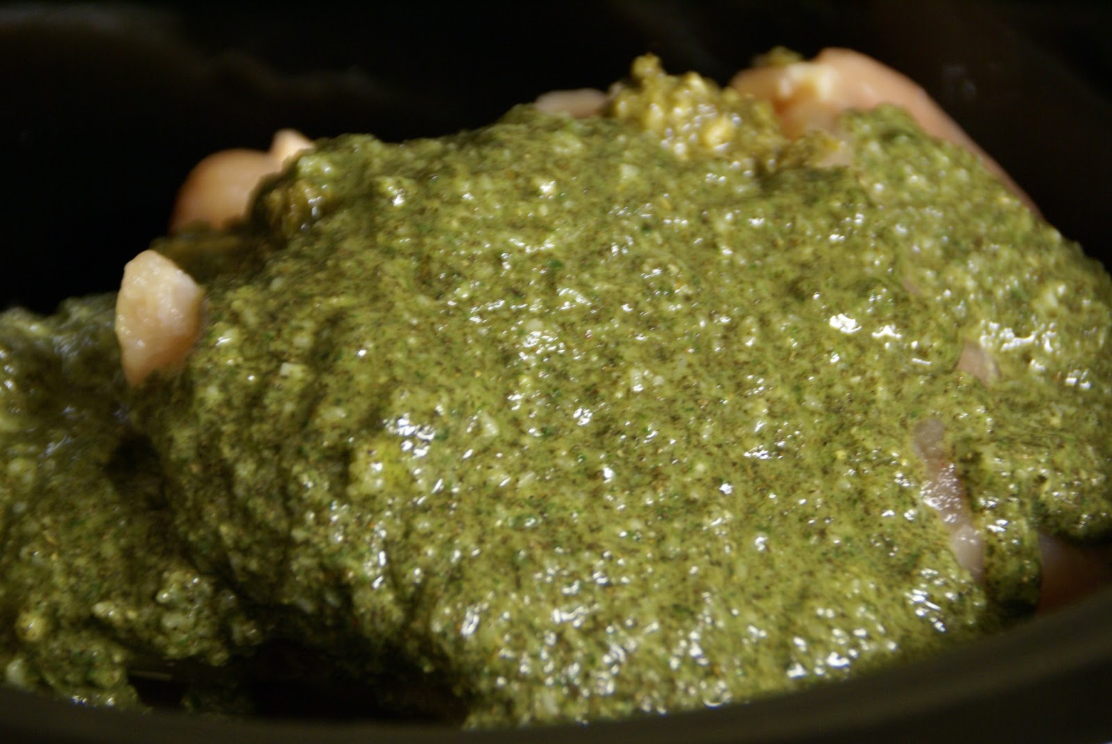 This is a right from my phone camera photo and definitely not studio-quality. For now, though, this is basically what Pesto looks like – it’s green and saucy. It tastes FABULOUS though!