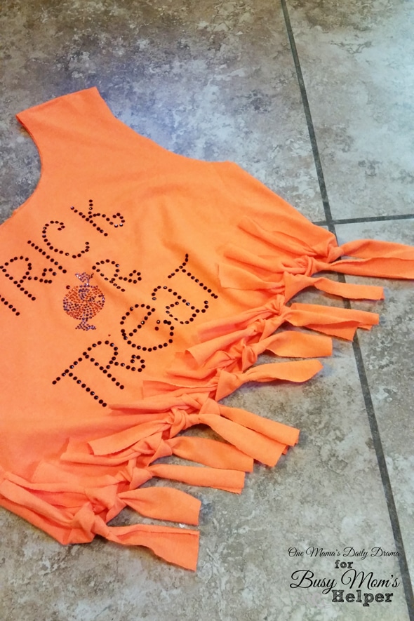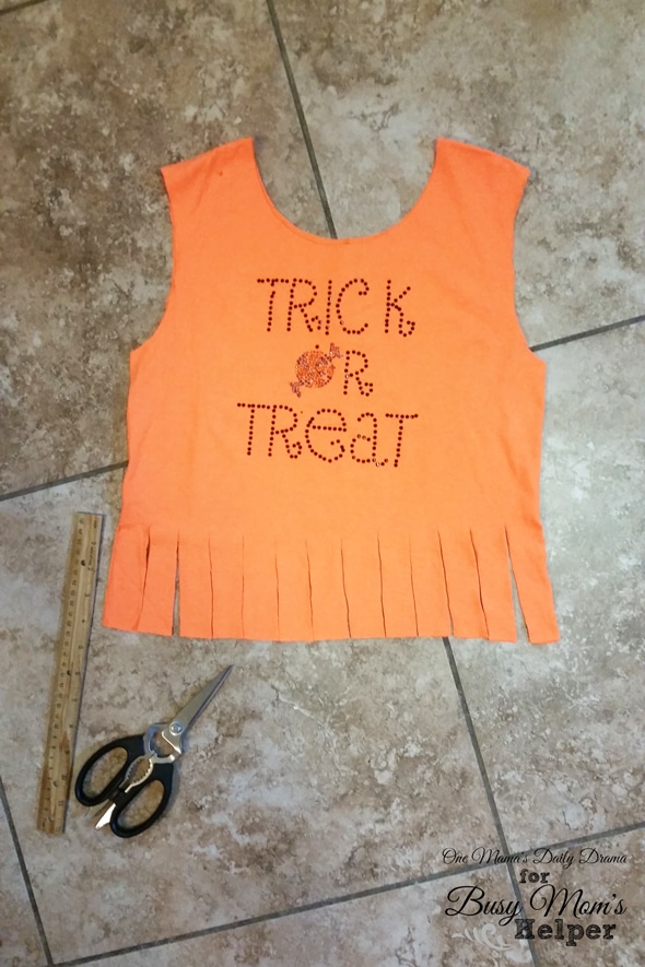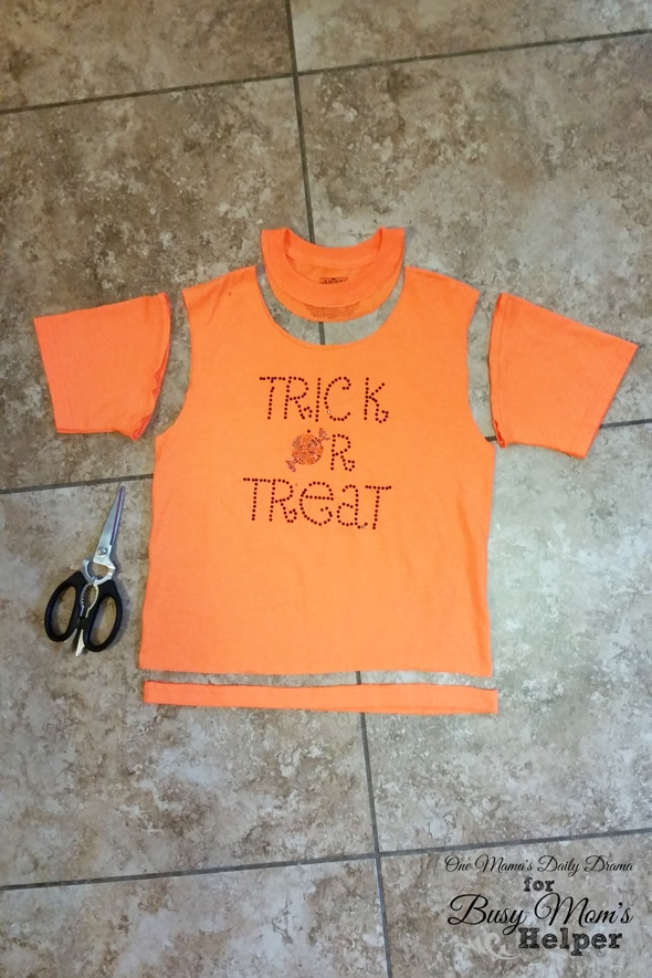 I made these using old Halloween shirts, but you could be really clever and find a shirt to match your child’s costume.