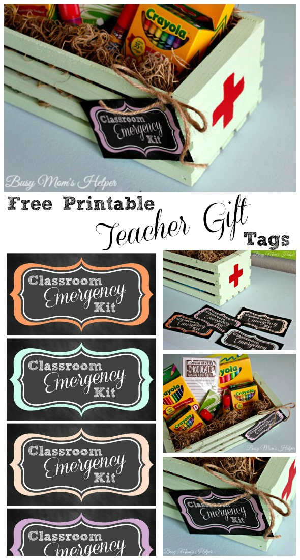 I’ll even share what we did for our fun gift – a Classroom Emergency Kit! Seriously, so many options of what you can include in here 🙂