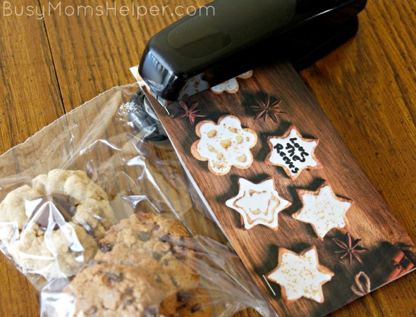 I wanted a variety of bag toppers, and these 3 were just perfect for my plans – follow these links to see the EXACT images I used! You can fill the bags with whatever you fancy – I did some chocolate candies in the Christmas Tree one, cookies in the Cookie one (of course!) and hot cocoa with marshmallows in the Snowman.