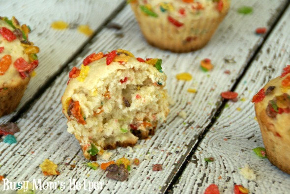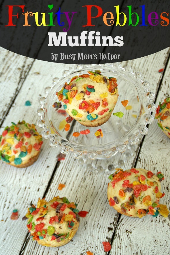 Not only do they get to have one of their favorite cereals, but also a filling, healthy muffin at the same time! I may have had a couple (or more!) myself, because I’m totally in love with Fruity Pebbles! They’re really quick to make, too. Just whip them up, stick them in the oven, and while they’re baking you can get a few other morning tasks done! Or make them the night before, store in an airtight container, then pull them out really fast in the morning….super easy!