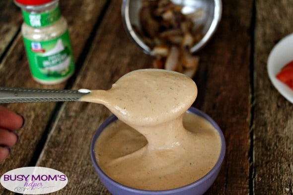 At first I was worried that using the same sauce for the burgers and the fry dip would be ‘too much’ – but goodness no! It was perfect, bringing out great flavor for each thing in a complimentary way. Loved it! Once you fall in love with the taste, you’ll want to sprinkle it on new things to try as well – I even sprinkled some into the actual ground beef patties of our burgers!