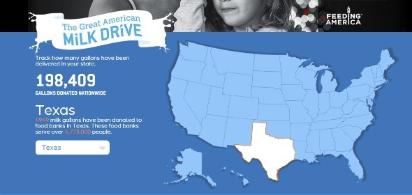 - Spread the word. For every share of this Great American Milk Drive video, a one-gallon donation will be made to one of the more than 200 food banks served by Feeding America.