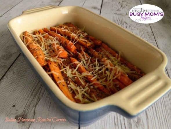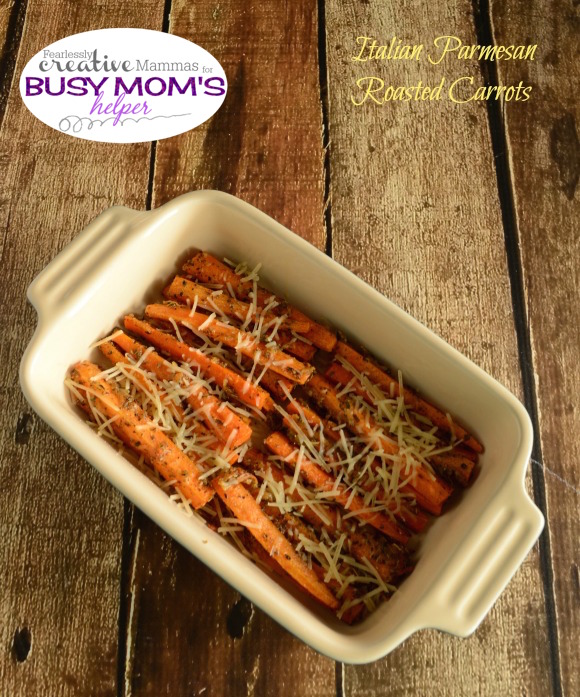These Italian Parmesan Roasted Carrots are really great and I suggest that if you grow a garden, planting a lot of carrots so you can have them often. A tip here is that if you are buying your carrots in the grocery store, buy the organic variety. Since they don’t have whatever it is that makes regular carrots huge, their size is more uniform from top to bottom. Not only that, but I personally think they are sweeter. Personal preference, I like them better. Stop over and visit me at Fearlessly Creative Mammas. I’d love to “see” you there.