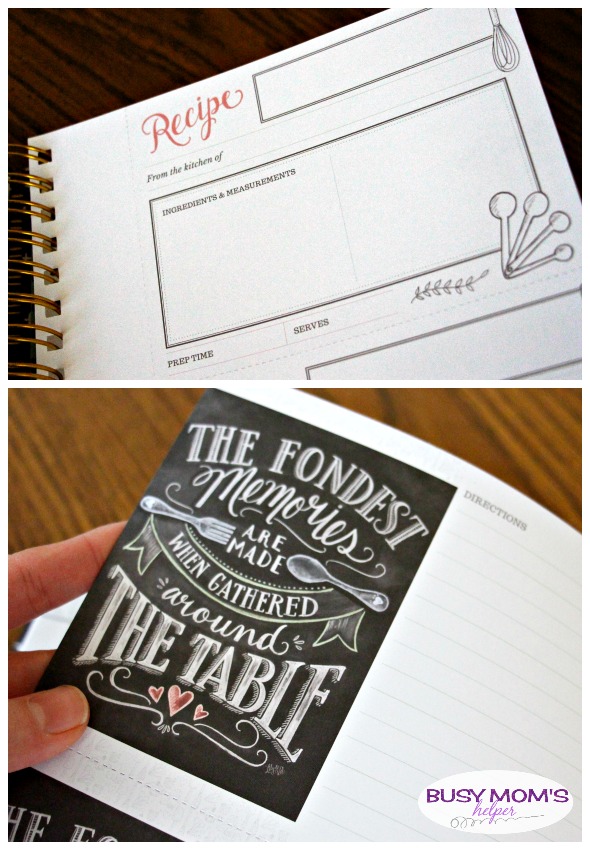This idea is so neat – a beautifully designed, spiral-bound recipe book with everything you need to keep track of your family’s favorite recipes! The cover is sturdy, and even the pages are a durable, thick cardstock type so you can be sure it’ll last. There’s pockets inside the front and back covers for you to stick notes or special keepsakes, and the cute pink tabs make finding things super simple.