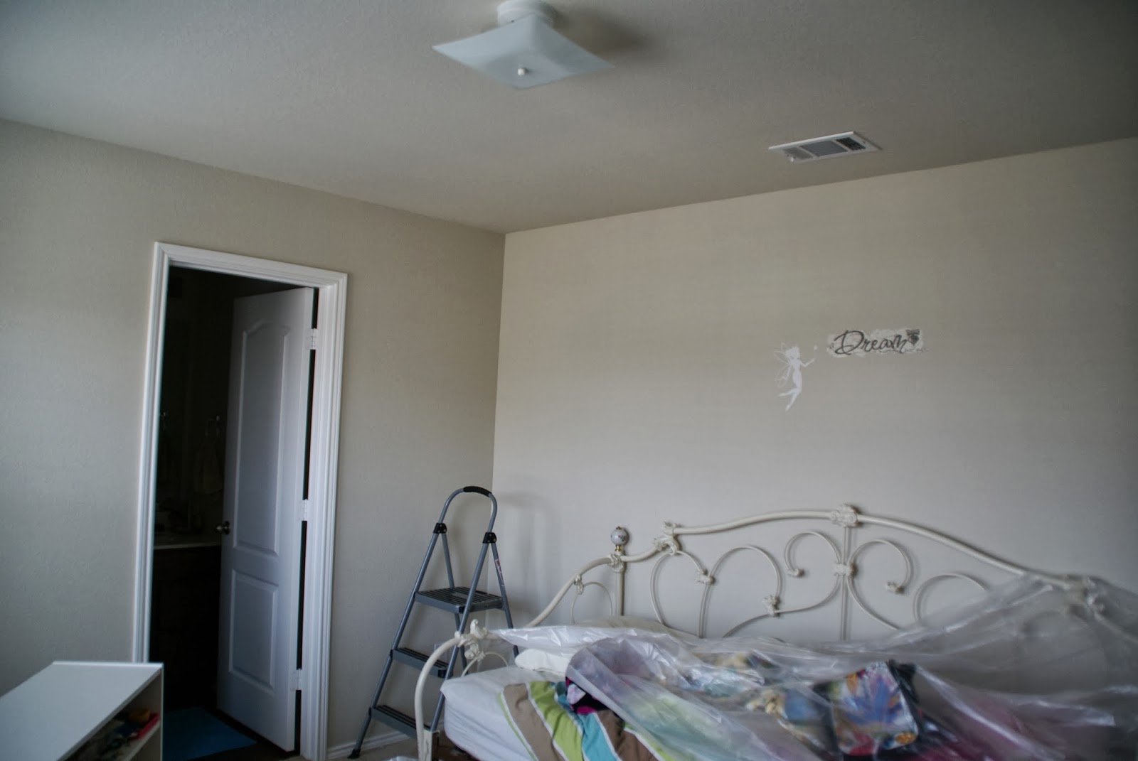 So we’re remodeling Wonder Woman’s room. By remodel, I mean MAJOR OVERHAUL! Our house is completely new, so it isn’t a matter of yuck, just a matter of making it our own. So we’re starting by making this room HER own. Starting with the paint!