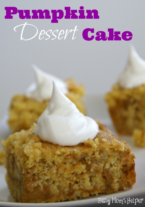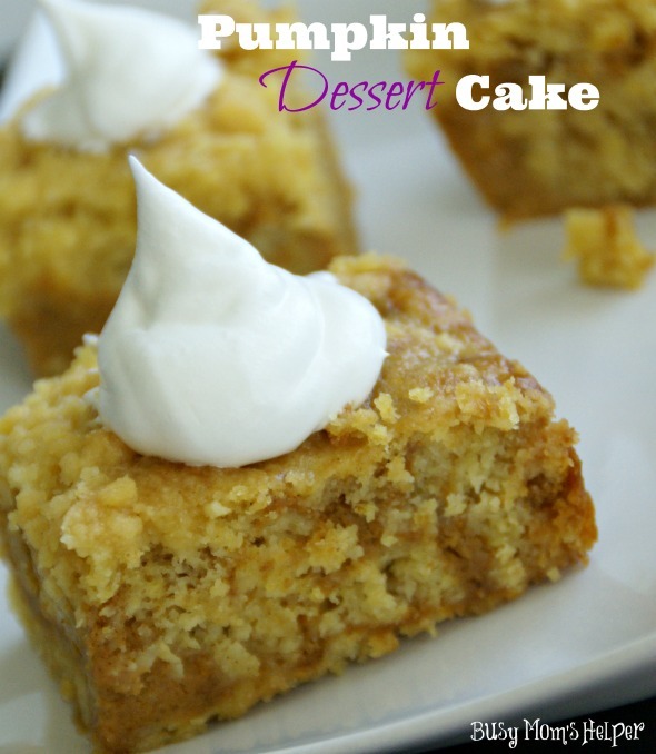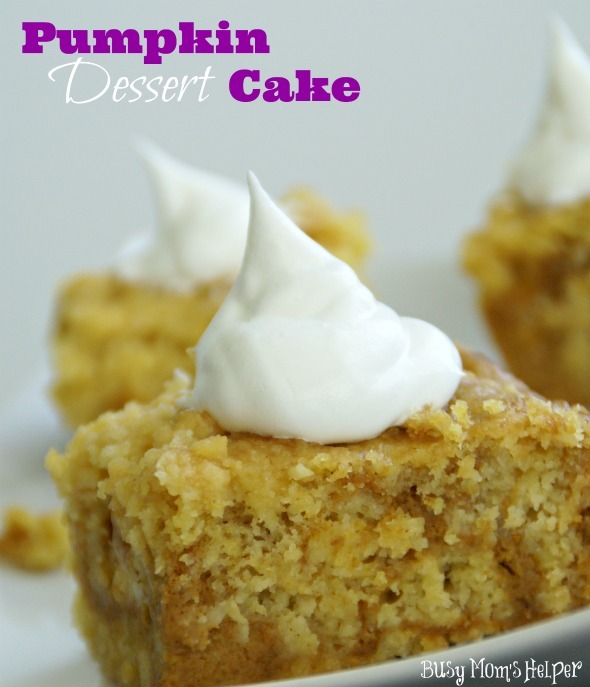 While I was away at SNAP! Conference last weekend, Hubby was amazing watching over the kids. With 4 little ones, though, it’s not easy! Luckily, our sweet neighbor took Wonder Woman to and from school each day, so that was one less thing he had to stress about with all the rug-rats. As a ‘thank you’ to our neighbor, we made a delicious treat to take over: Pumpkin Dessert Cake!