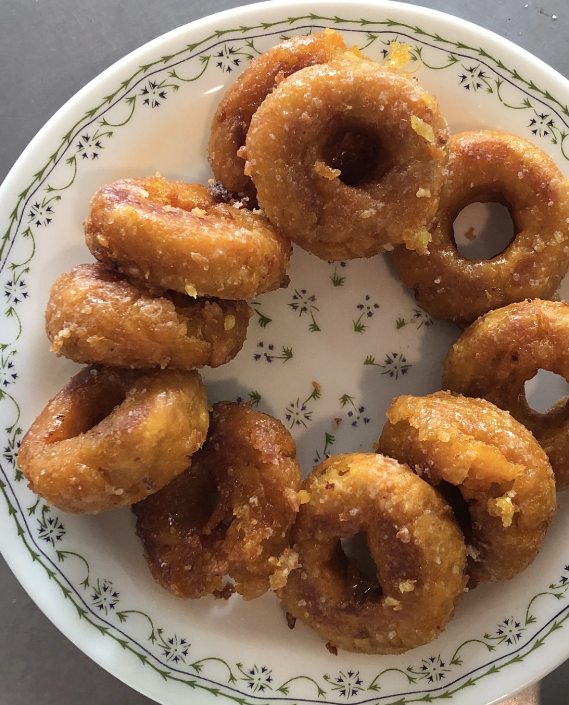 Full disclosure, I did not in any way invent this snack. A year ago, I was traveling in Malaysia and came across this delicious snack in one of the stalls in their night markets. When I was thinking of what to serve as a snack for my baby sis. I remembered their Glazed Sweet Potato Doughnuts (They call it Cucur Keria) and I decided to remake them. Lo and behold, it did not take me a few tries to be able to do so. I know that it was made of sweet potatoes and they have sugar, so I think I know what exactly I need to do. Now, let me share with you how to create my baby sister’s most requested snack.