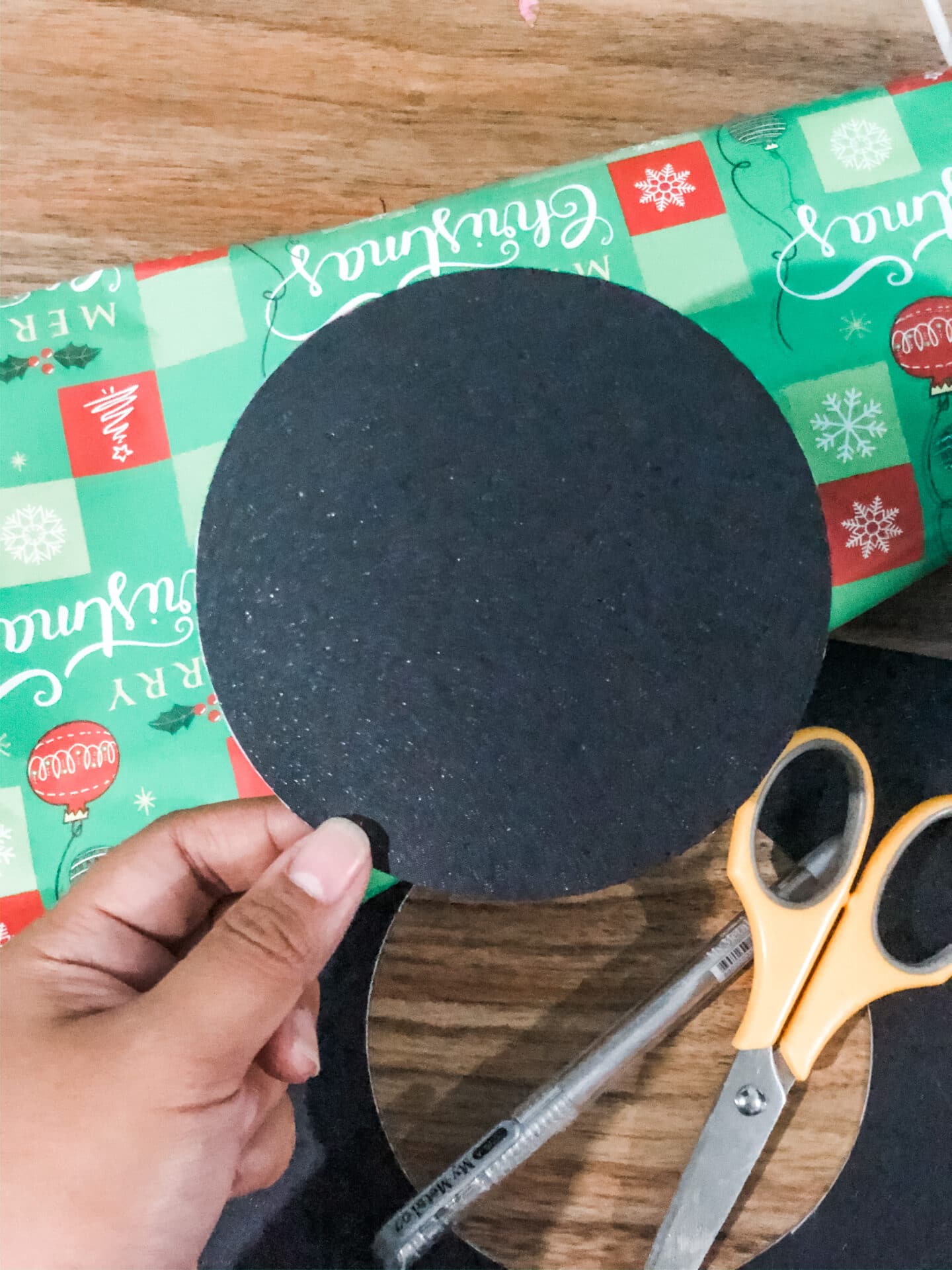 Trace a circle using a compass (or any circle-shaped item you found at home), then cut it out. The bigger your circle cut out is the bigger your rose is, so feel free to mix big and smaller sizes.