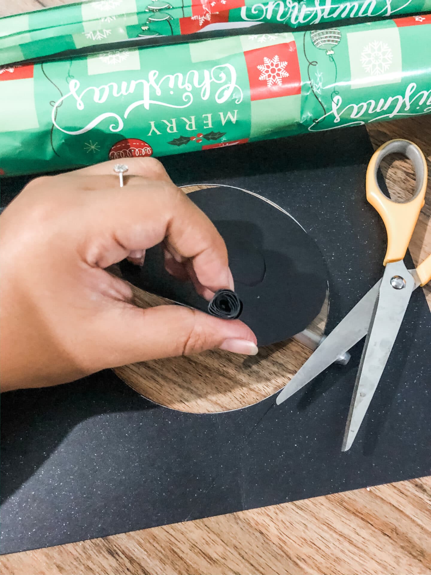 From the edge of your spiral, start rolling the paper inwards. Try to make the rolls as tight as you can. You’ll loosen it up a bit later.