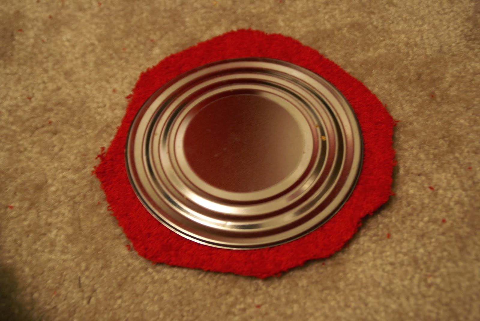 Take the lid to one of the cans, and cut a piece of the towel around it.