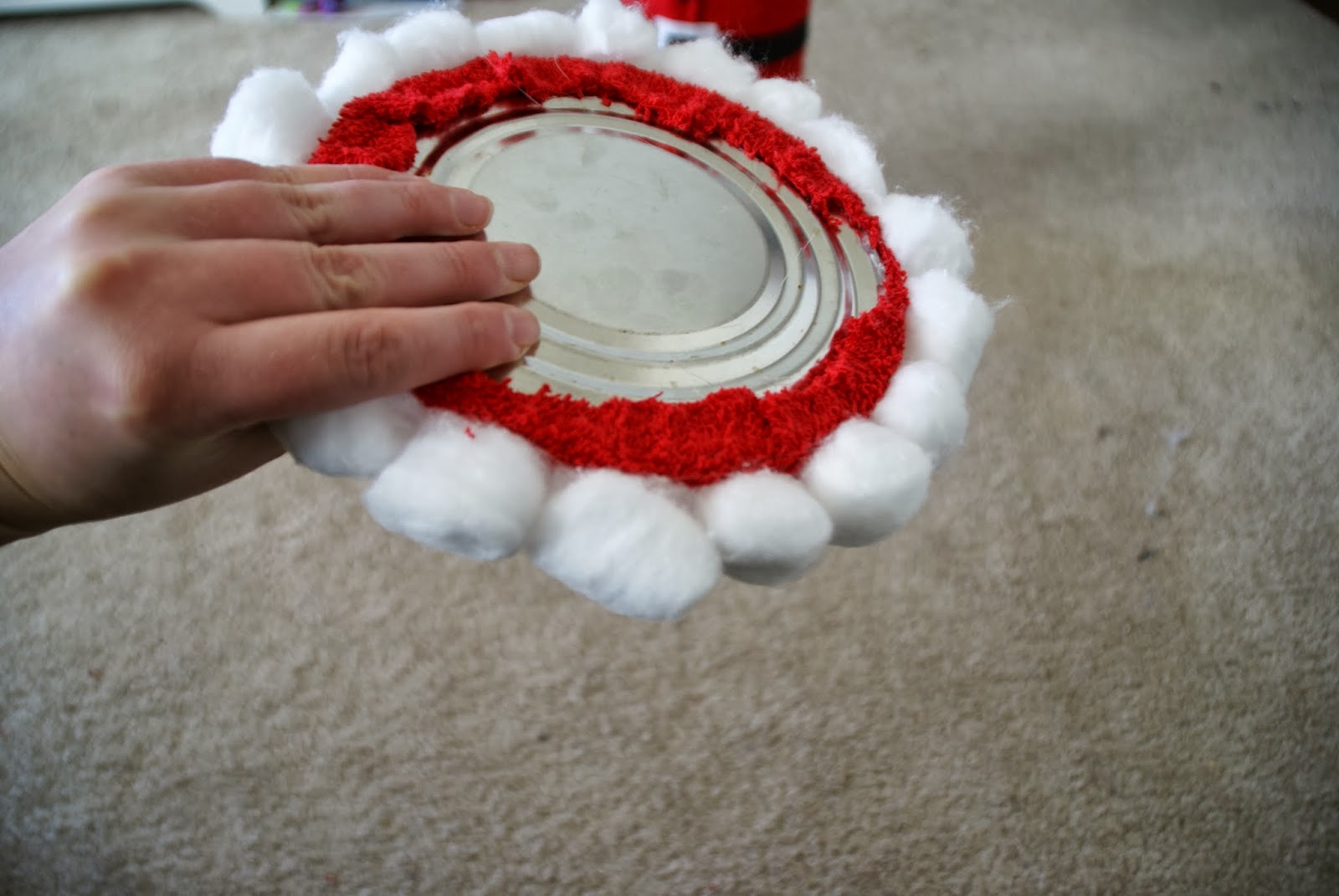 I then hot glued cotton balls all along the edge of the ‘hat’ piece.