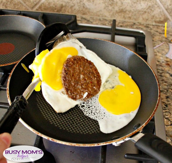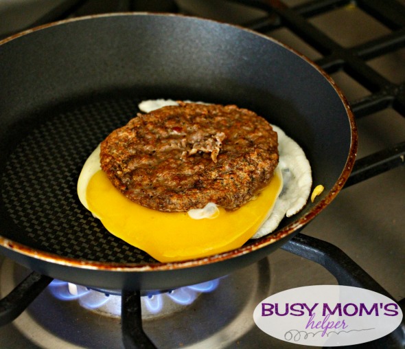 If you want to get really creative, you could put your slice of cheese inside the eggs with the sausage patty. I don’t because my kids get mad – they want to SEE the cheese, for some crazy reason. Whatever gets them to eat a healthy, filling breakfast is fine by me!