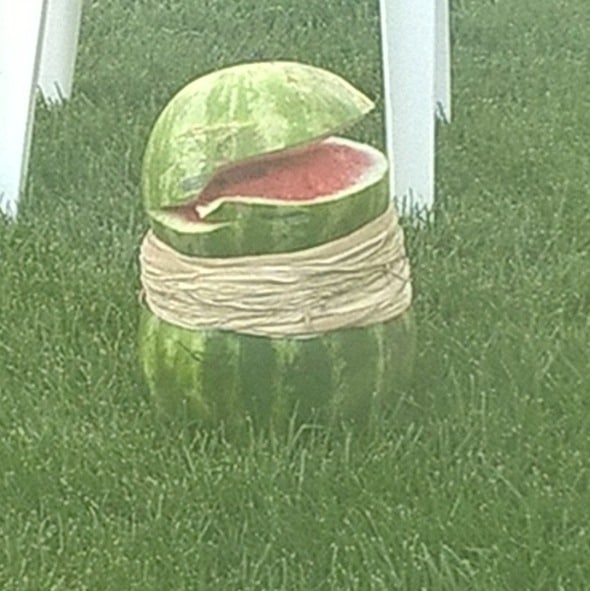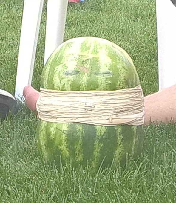 Place the watermelon on the ground or some kind of stand so it is upright and not falling over all the time.