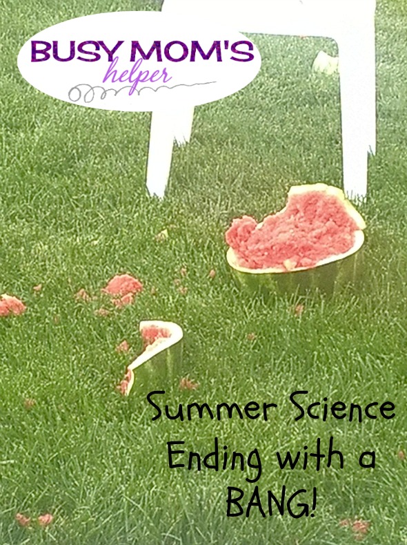 So yes this is definitely an outside experiment and be prepared to have watermelon all over your yard but trust me, it is completely worth it.  Summer Science Ending with a BANG! Is an experiment you can do several times and still be amazed, each watermelon does something different so it always keeps you on your toes.