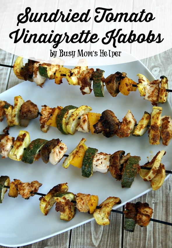 Sundried Tomato Vinaigrette Kabobs / by Busy Mom's Helper #kabobs #marinade #sundriedtomato #vinaigrette #chicken