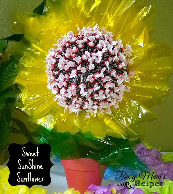 Sweet Sunshine! Need a fun and exciting gift to brighten someone’s day? Well this Sweet SunShine Sunflower is perfect for anyone that needs cheering up, it has delicious tootsie rolls and looks amazing! Also is great as a center piece for a summer get together.