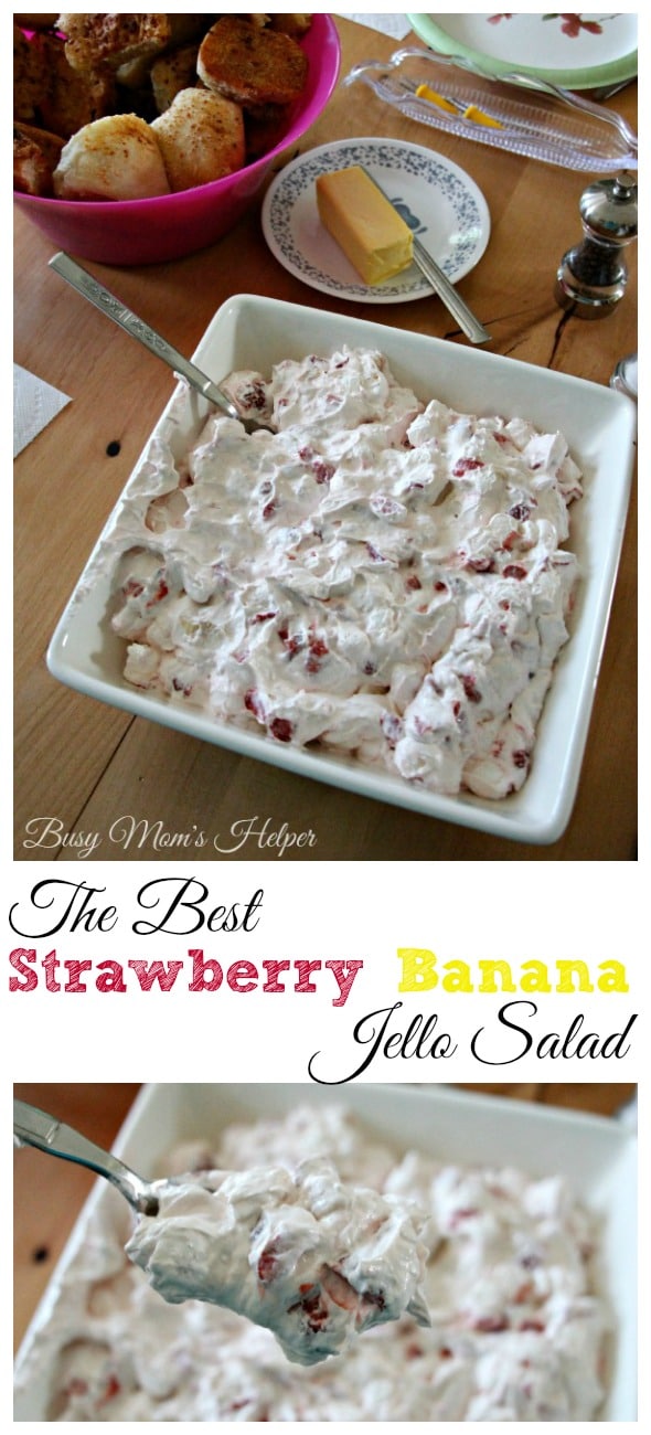 It is summer time and summer time means parties, bbq’s, and get togethers with lots of food and fun. With all these parties don’t forget the jello salad so here’s a simple but delicious recipe for The Best Strawberry Banana Jello Salad recipe to help you have a great party.