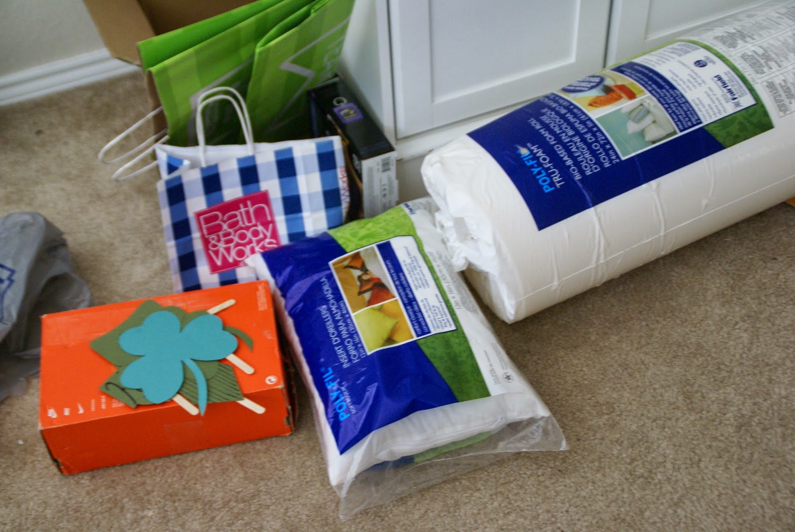 Supplies for craft projects left scattered throughout the house…