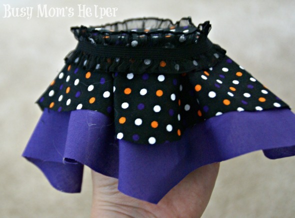 Fold over the edges and glue a ribbon around the edge of the lid. This will make the fabric ruffle like a skirt!