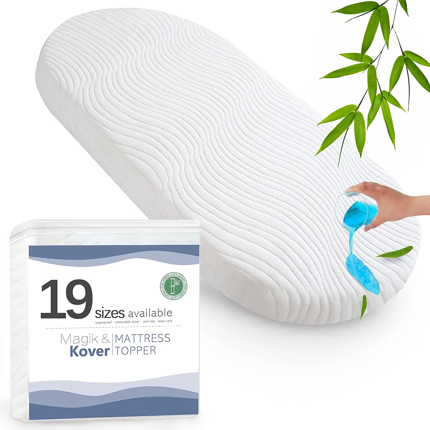 This is a great option for anyone that does not have the Halo bassinet. It provides optimal comfort with its breathable mesh sides and soft cushioning foam core construction. This topper is adjustable between sizes – to suit your bassinet needs. Plus, its waterproof liner helps protect against accidents during diaper changes or other messes throughout the day.