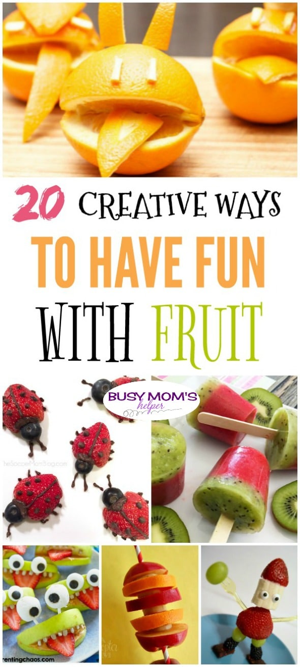 Do you have picky eaters in your home? My kids do fairly well – but they’re still kids so of course there’s plenty of delish food that they just refuse to eat. I think it’s a trial all parents must go through – getting our children to eat a variety of foods, and hopefully some healthy ones like fruit! To help you with your battle, here’s 20 Creative Snack Ideas with Fruit – make mealtime or snacktime fun again with these clever fruity creations!