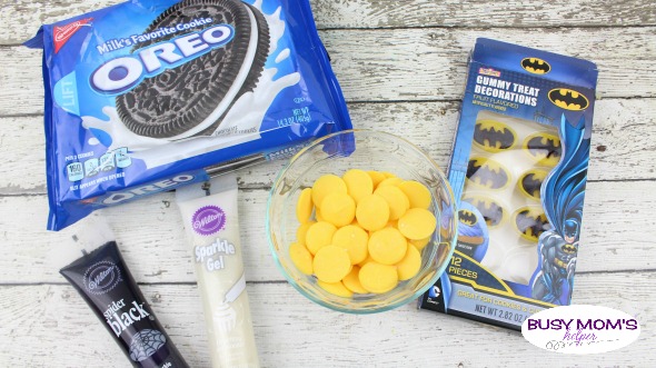 The ingredients are simple and easy to find, which makes these Batman Oreos even better! I’ve included affiliate links for your convenience, but you can also find most of these at the local grocery store.