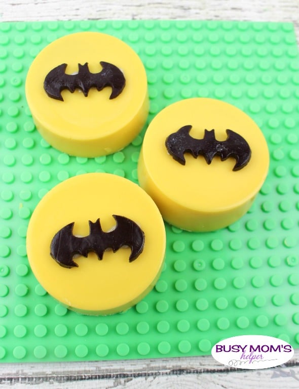 I don’t know about your kids, but ours are superhero fanatics (and we are, too), so when I found these gummy treat Batman symbols I knew I had to make something fun for them. And these are so easy that you could create them for just about any holiday or theme – even if you aren’t as in to Batman as we are. 😉